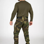 Handige afwerking: meerdere zakken met rits/klittenband, verstelbare taille en verkrijgbaar in camouflage of neutrale varianten.